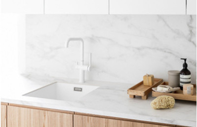 The sink becomes a focal point in the kitchen, drawing attention with its presence. A thoughtfully selected Silgranit sink color perfectly complements the kitchen's design and elevates the look of the backsplash.