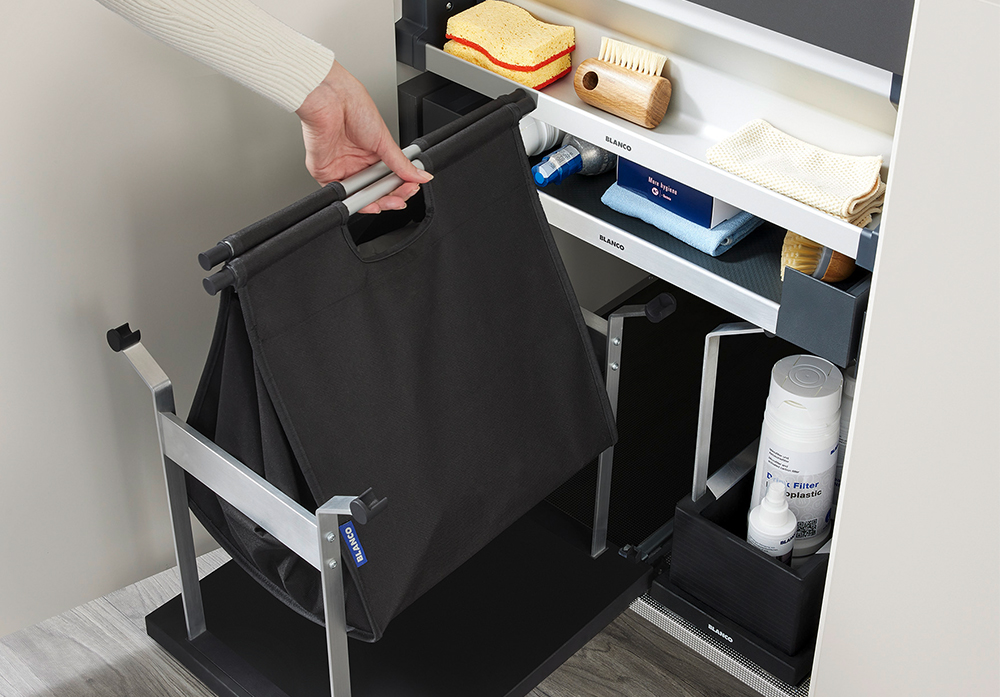 The Select bag is a practical pull-out waste mechanism that is easy to attach to the bottom of the cabinet.