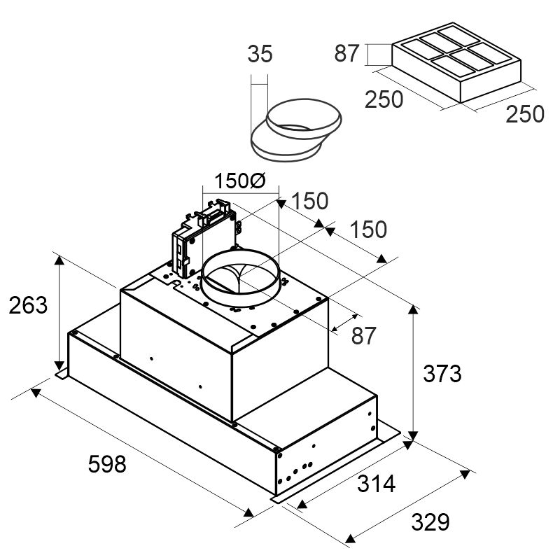 Installing the cooker hood is easy and quick to do with clear instructions and installation pictures. For installation, an approximately 1-meter long duct pipe (150 mm) is also needed.
