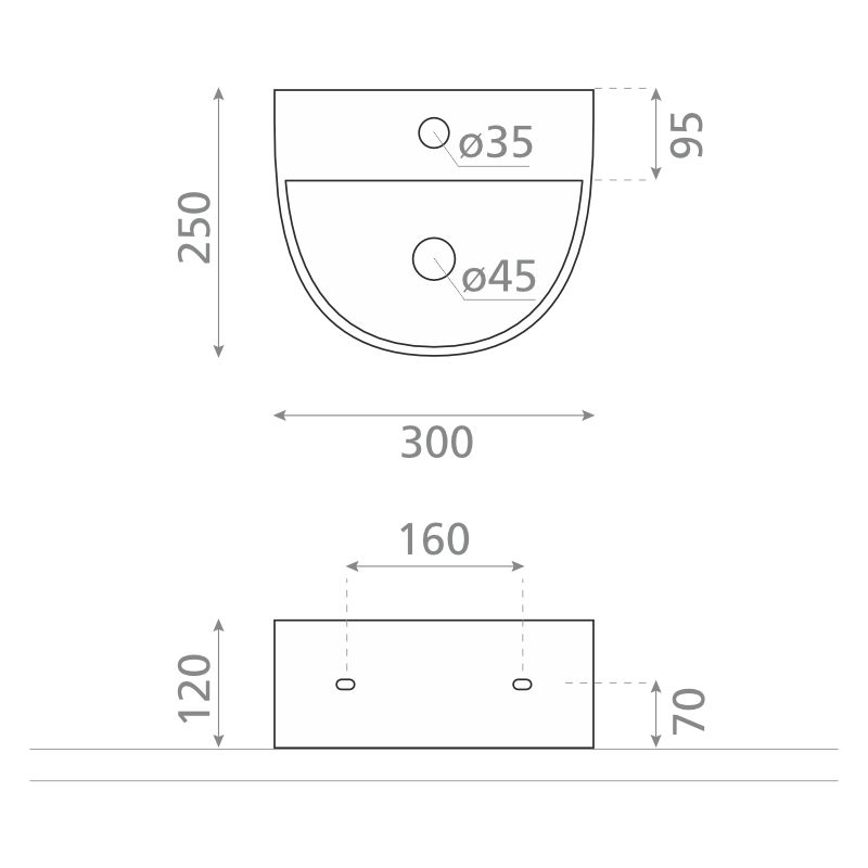 The washbasin is mounted on the countertop or on the wall. Note: Mounting brackets are not included.
