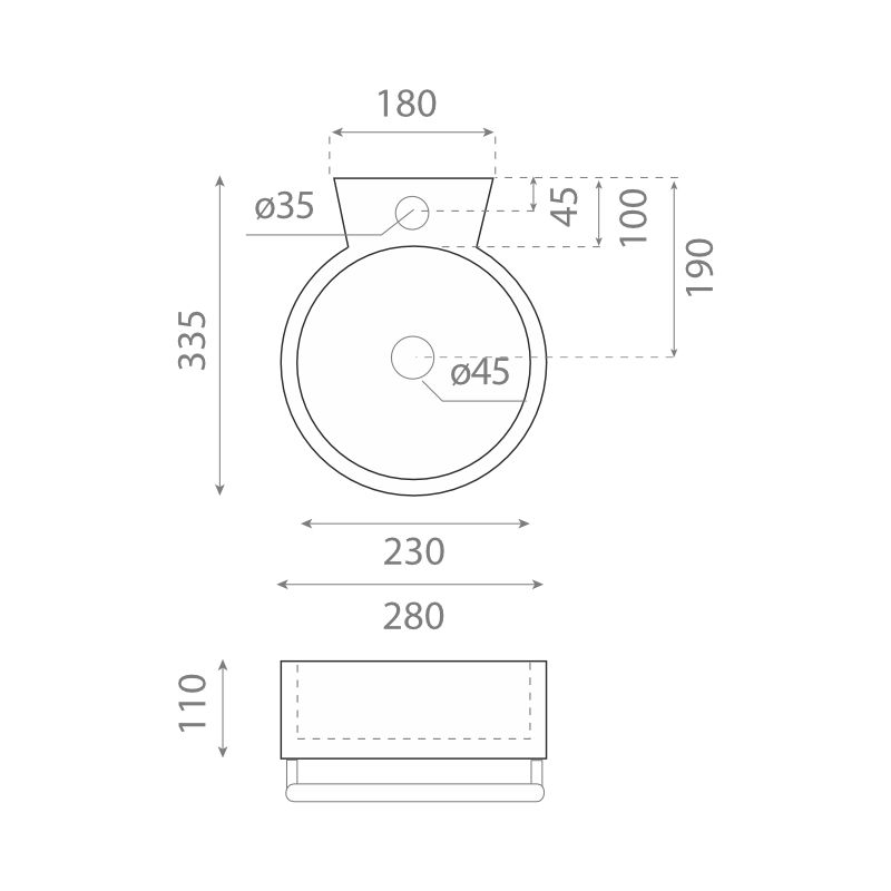 Note! The product is delivered without a drain valve and trap. Please note that the washbasin model does not include an overflow protection and you must select an unslotted waste fitting.