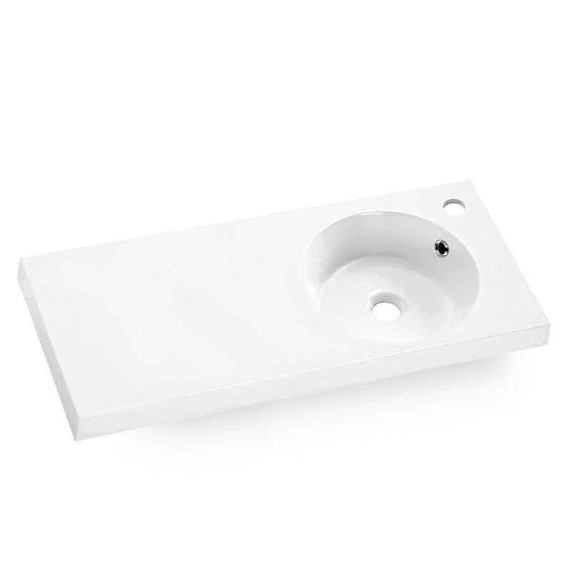 The timelessly beautiful and practical washbasin countertop pairs well with various bathroom furniture. The fresh white color of the porcelain adds lightness and a calming spa-like atmosphere to the bathroom decor. The washbasin countertop is easy to clean and, with proper maintenance, remains beautiful for years.