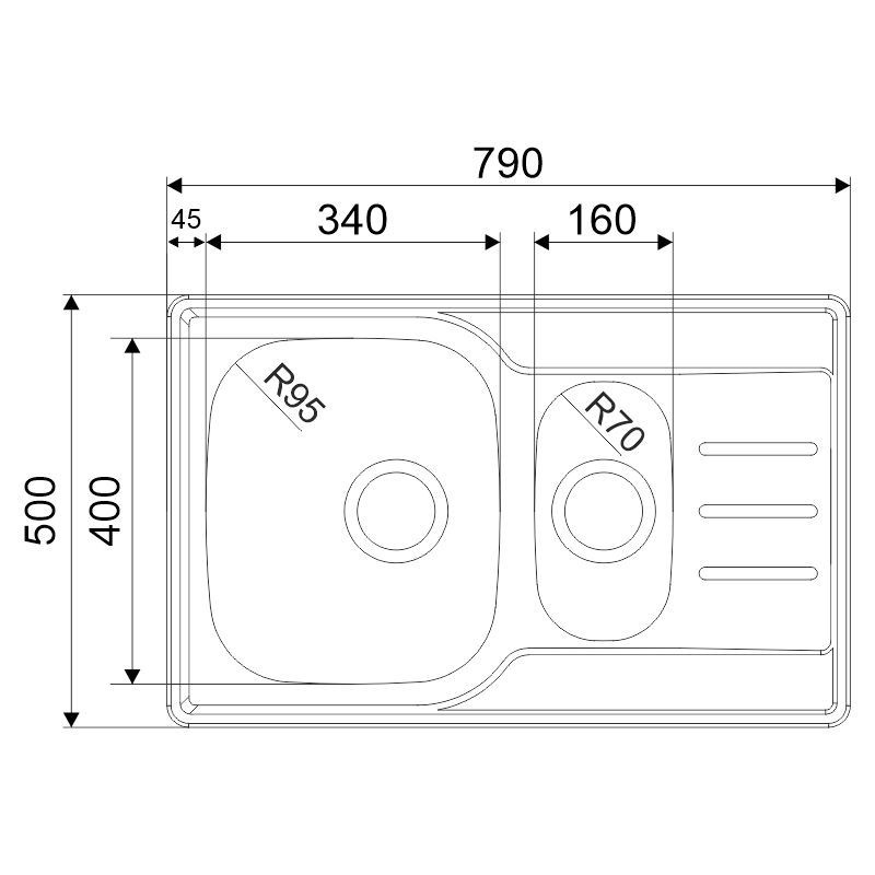 The affordable selection of inset sinks includes the most popular models with and without a short draining surface. The material used is strong 0.8 mm stainless steel, and the faucet area has been further strengthened. The sinks feature a consistently stylish low-profile edge.