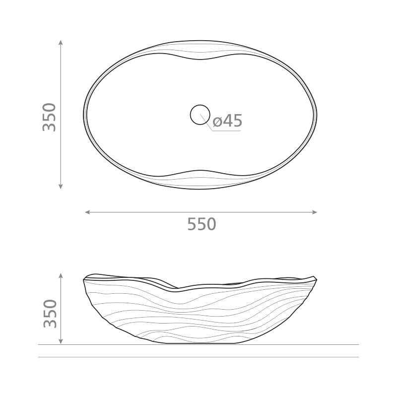 The washbasin is installed on top of the countertop, and the faucet can be placed either beside or behind the washbasin. The beautiful natural grey color of the washbasin complements the bathroom environment and brings a spa-like atmosphere to the space.