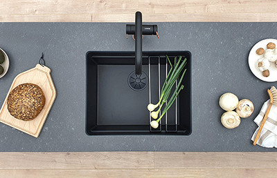 Den matt svarta färgen på köksdiskhon skapar en vacker kontrast mot ljusa ytor. Den ramar in och drar till sig uppmärksamhet bland ljusa kökstoner. För den som söker en djupt svart diskho är matt svart det rätta valet.