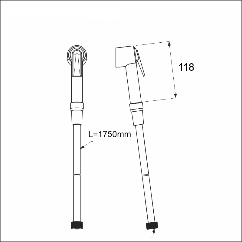 Duschslangens längd är 175 cm. En 200 cm lång slang finns också som tillbehör.